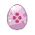 Pepe's egg is pink with a magenta, cloud-like stripe going across the center of the egg. In the stripe are cream rabbit head imprints.
